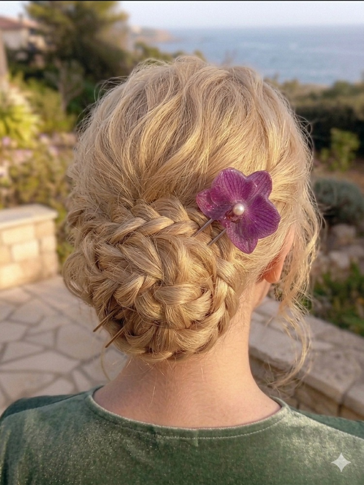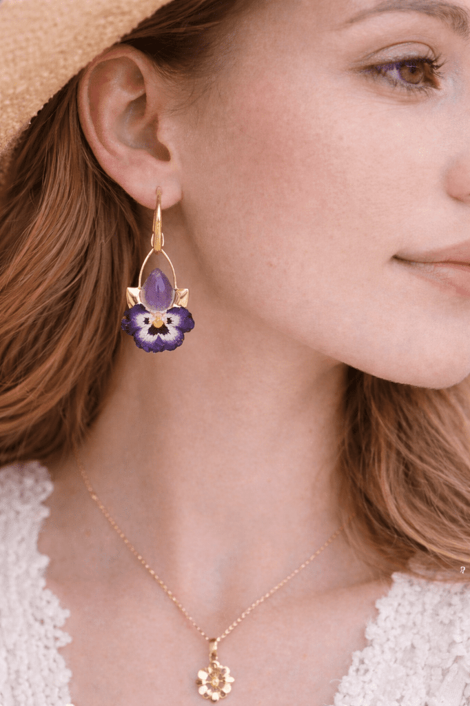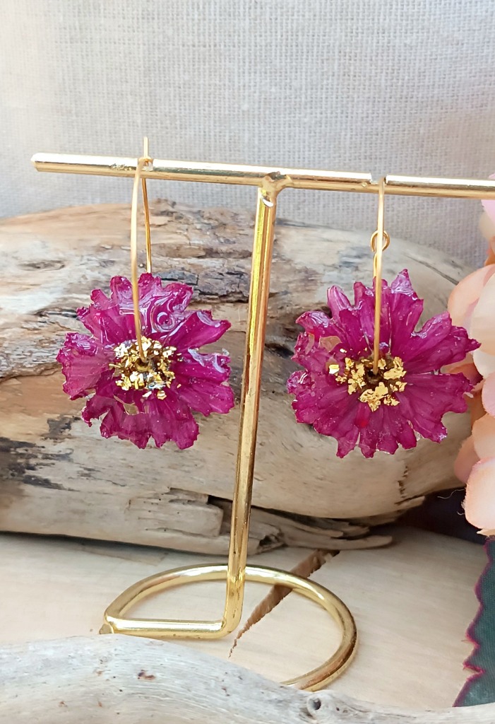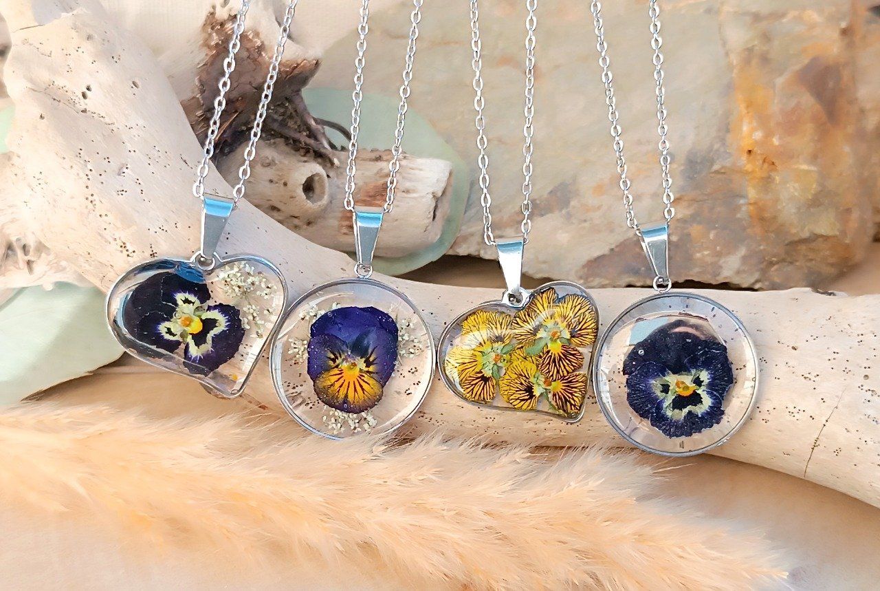 Je crée des bijoux fantaisie à partir de matières naturelles : pierres, fleurs séchées, coquillages, bois.