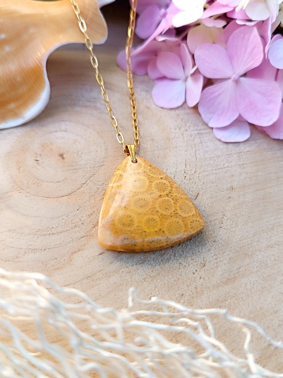 C'est une pierre naturelle, formée lors du remplacement du corail par l’agate. Il apparaît sous la forme de petites fleurs dans la pierre.
