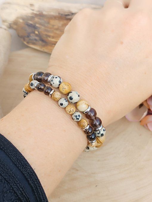 Deux tailles de perles vous sont proposées pour ce bracelet aux belles couleurs automnales, 6 ou 8mm