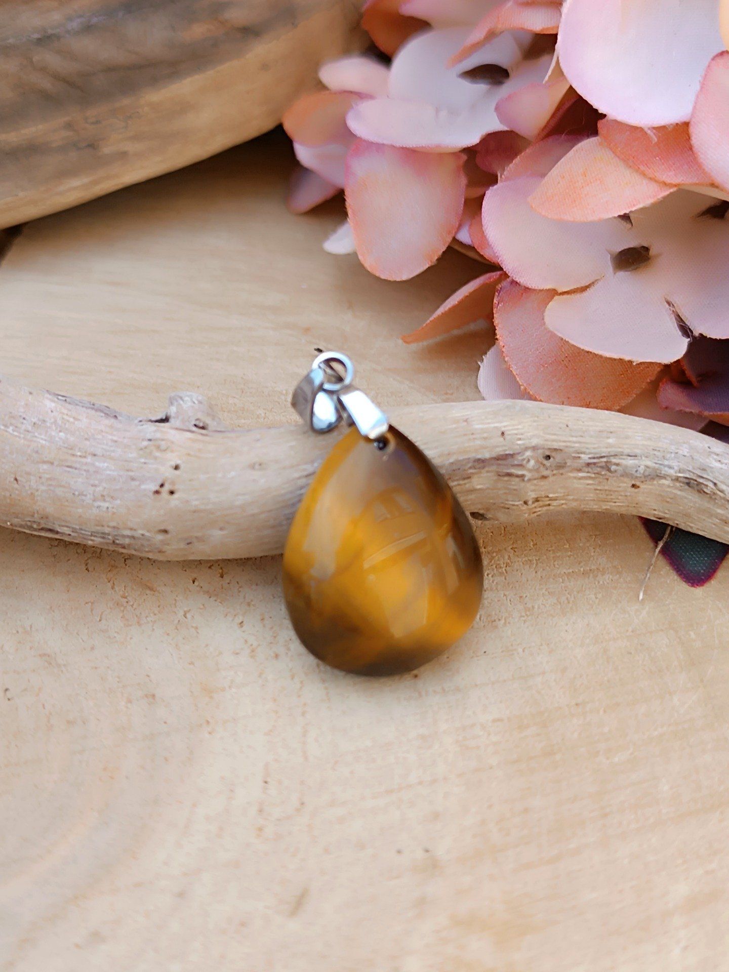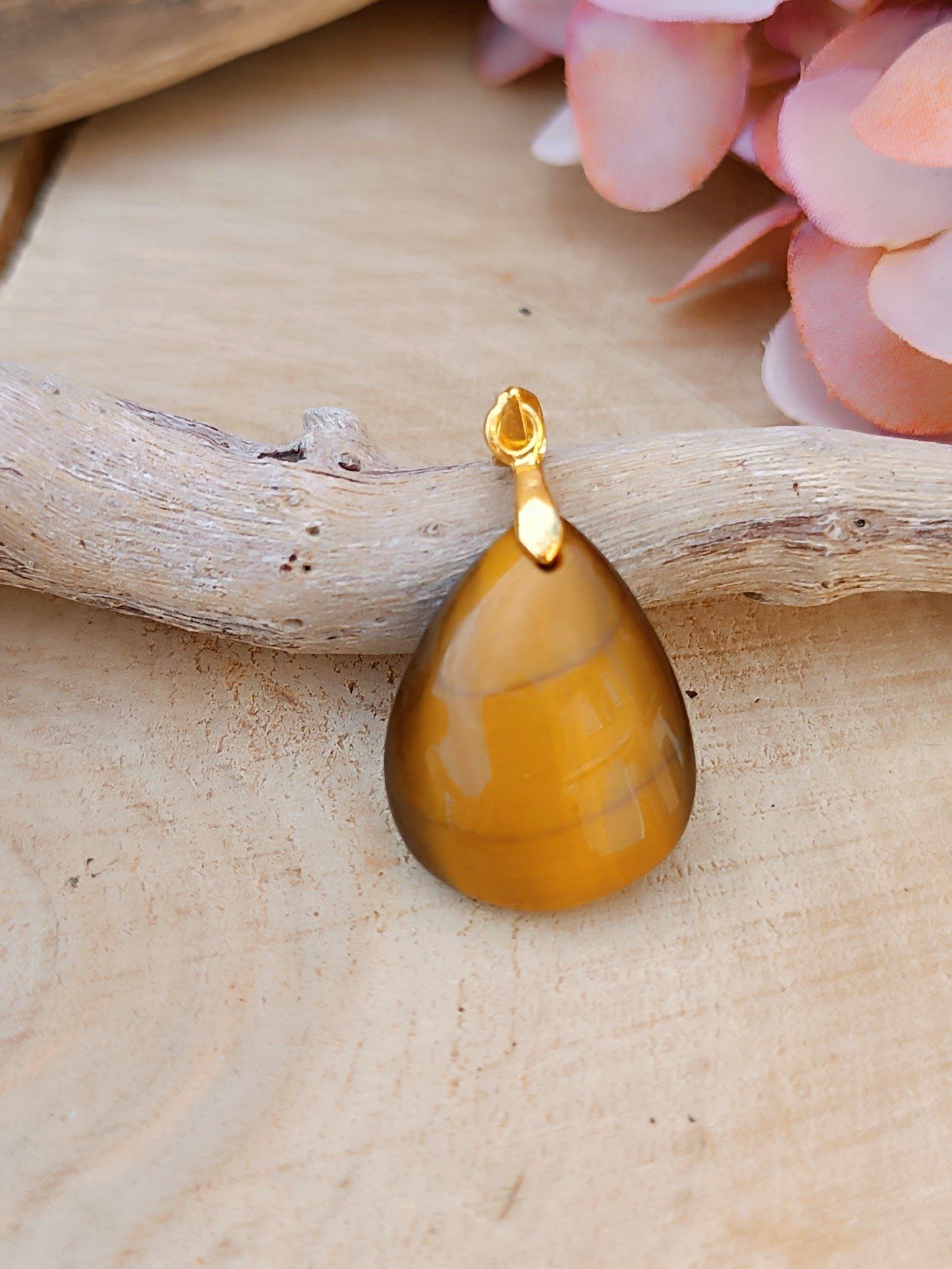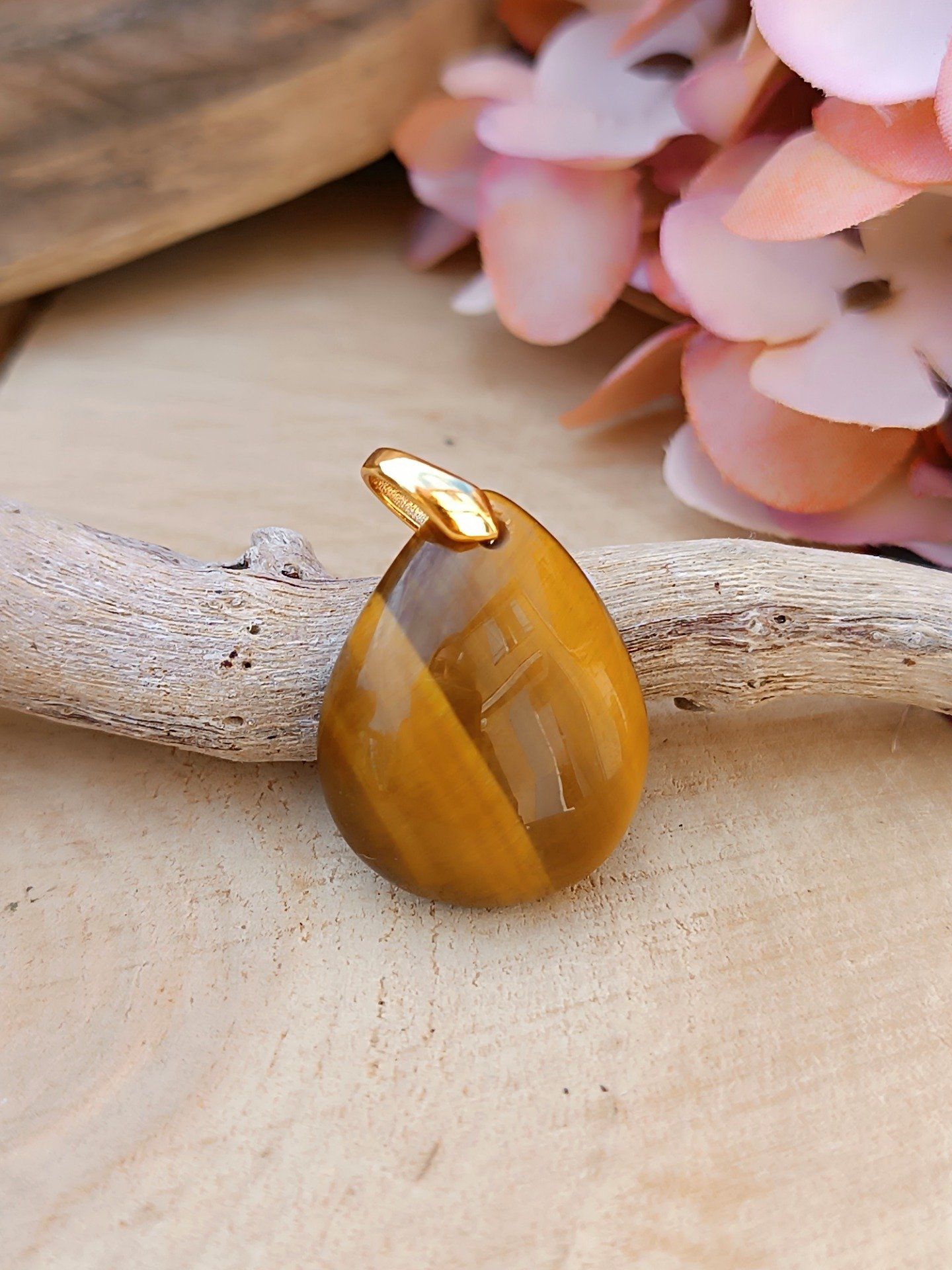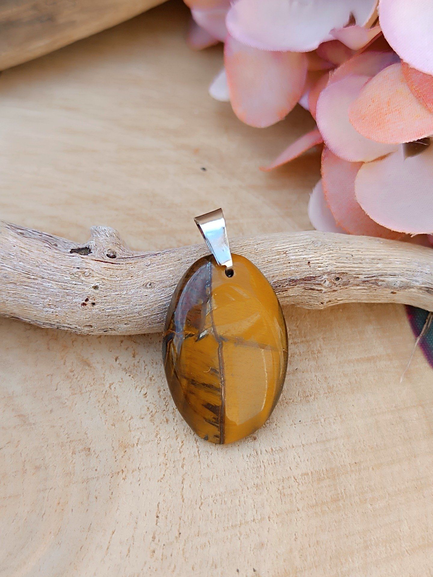 Pierre N°3 : 23mm X 17mm. Bélière acier inoxydable doré.