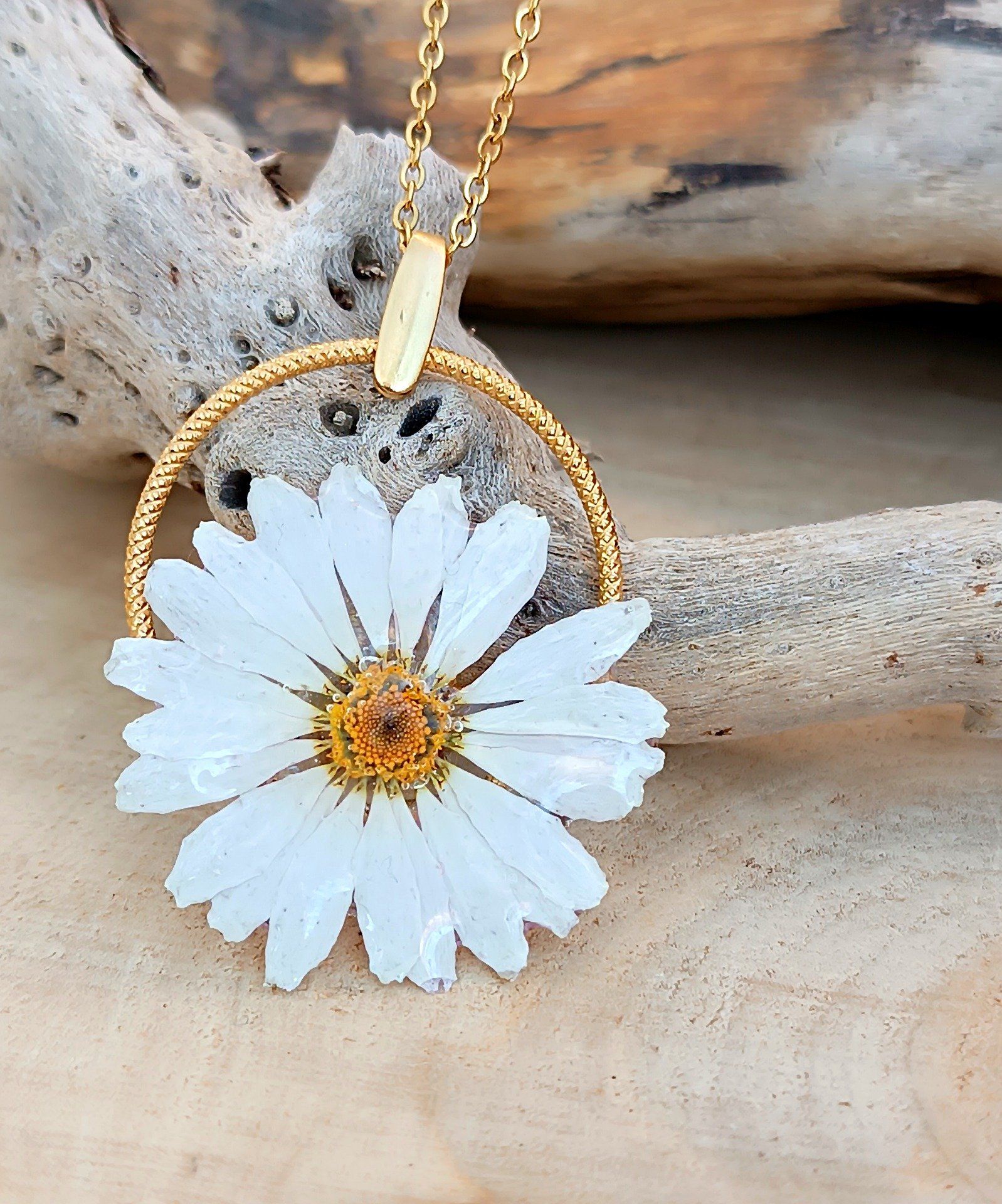 Suspendre la marguerite dans cet anneau doré permet de souligner sa silhouette parfaite.