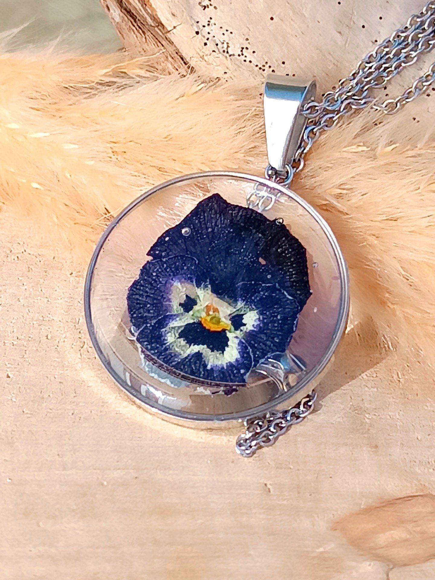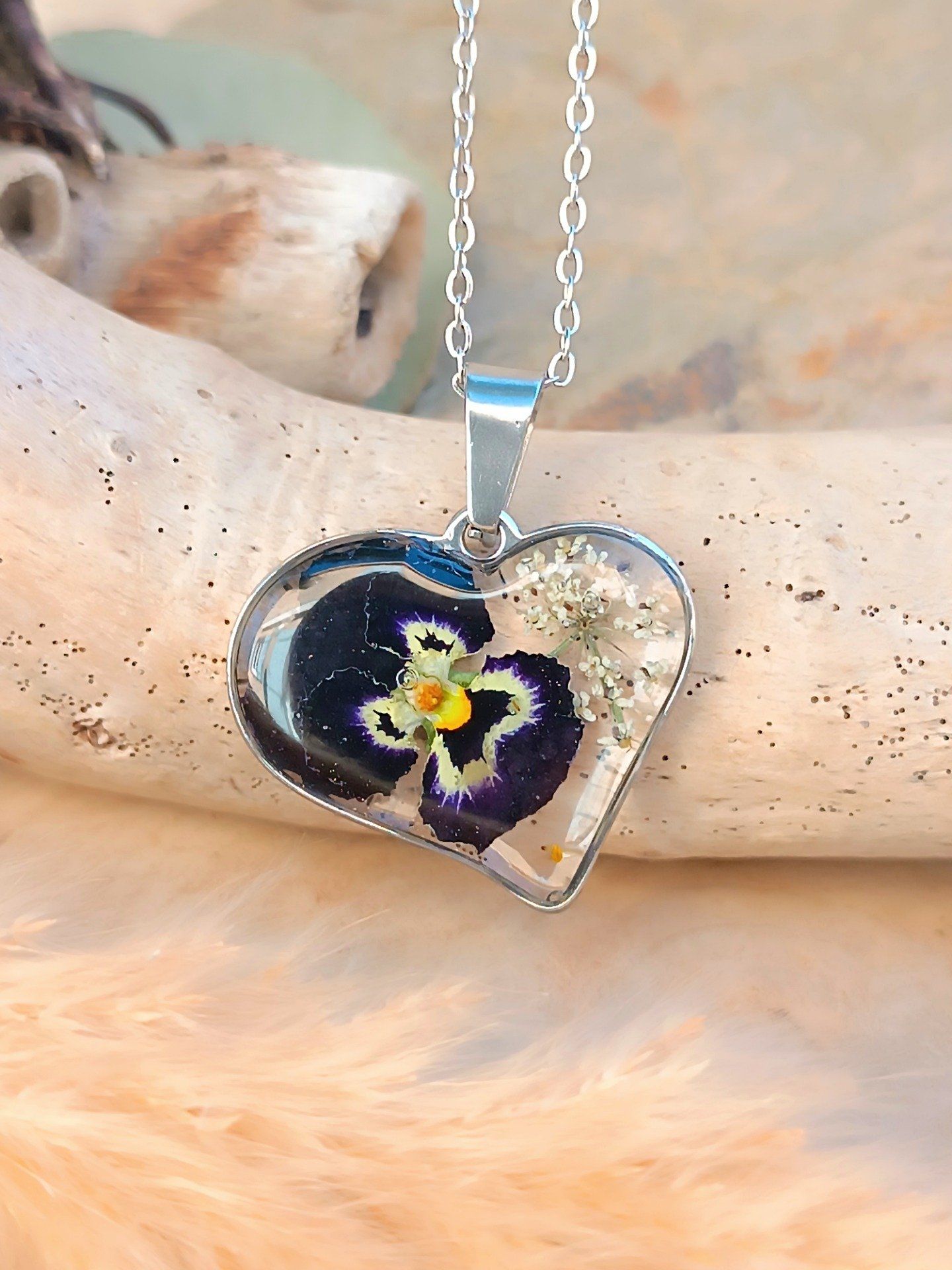 Chaque fleur étant par nature différente, chaque pendentif possède ses propres nuances.