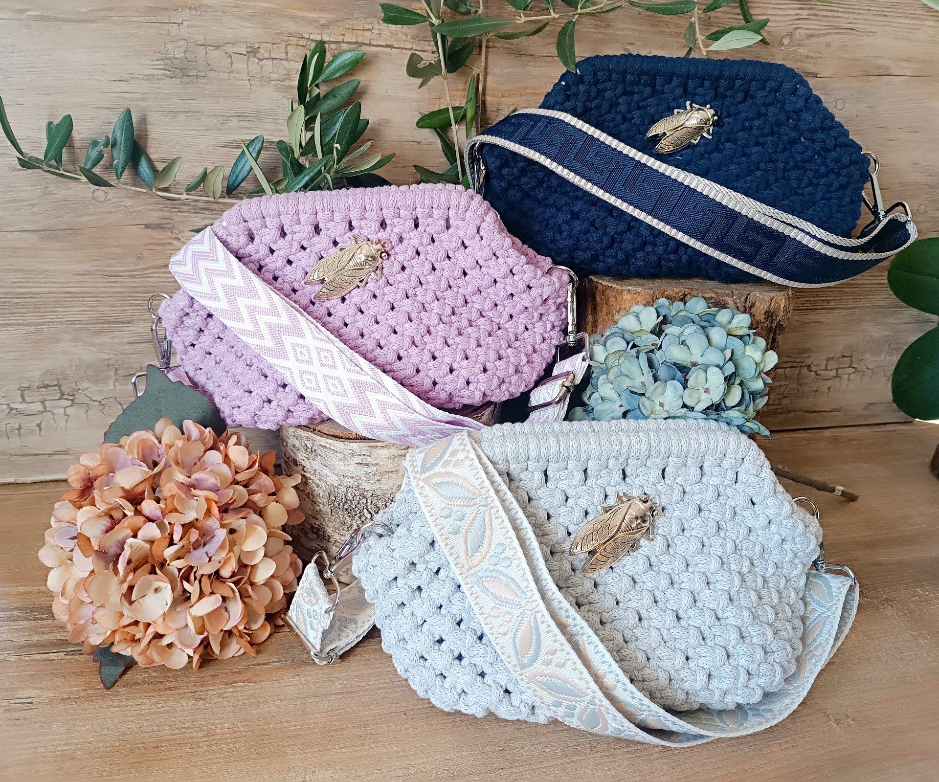 les sac Romy en macramé, séduisent par leur allure intemporelle et rétro.