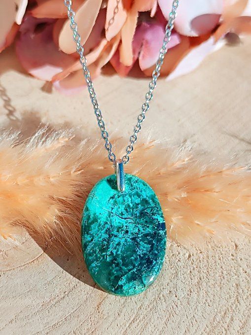 La shattuckite est un silicate de cuivre. On la trouve de couleur bleue, allant du bleu clair au bleu foncé. Elle est en principe associée à diverses pierres telles que la chrysocolle, offrant ainsi une couleur unique et particulière. C’est pourquoi on parle aussi de chrysocolle shattuckite. On la trouve associée également à de la malachite ou de la dioptase comme celle que je vous propose.