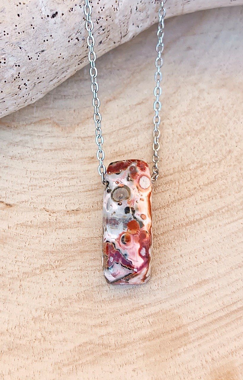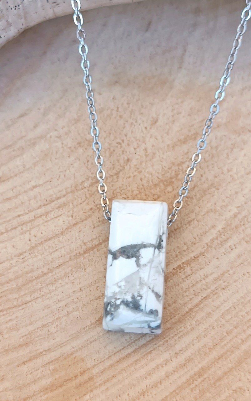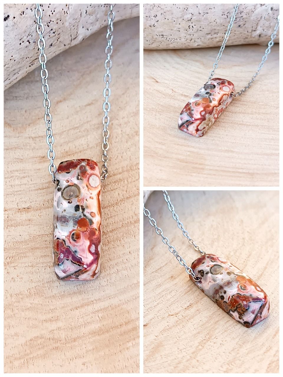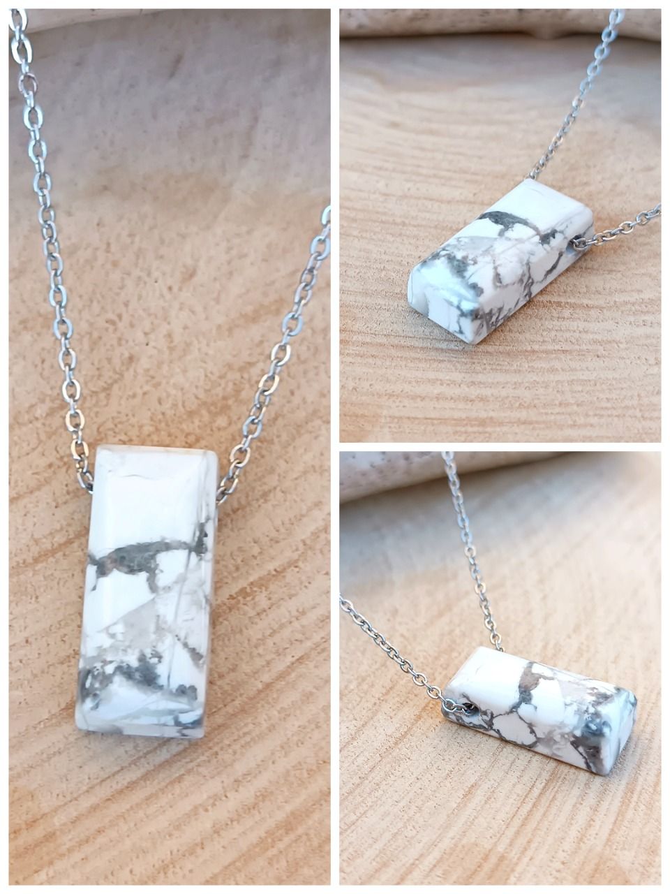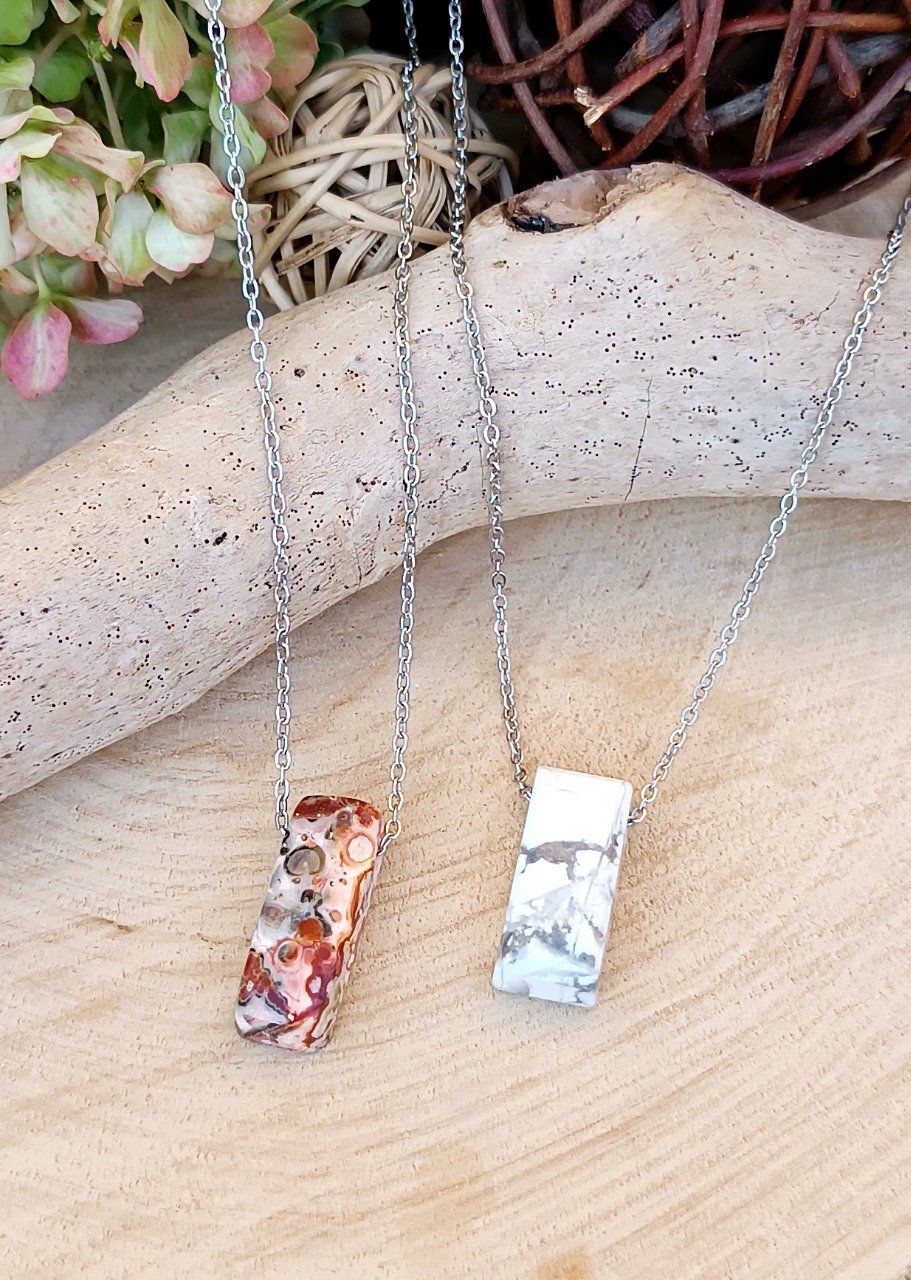 Des colliers aux formes sobres et modernes. Juste la beauté des pierres mise en valeur sur une chaîne.