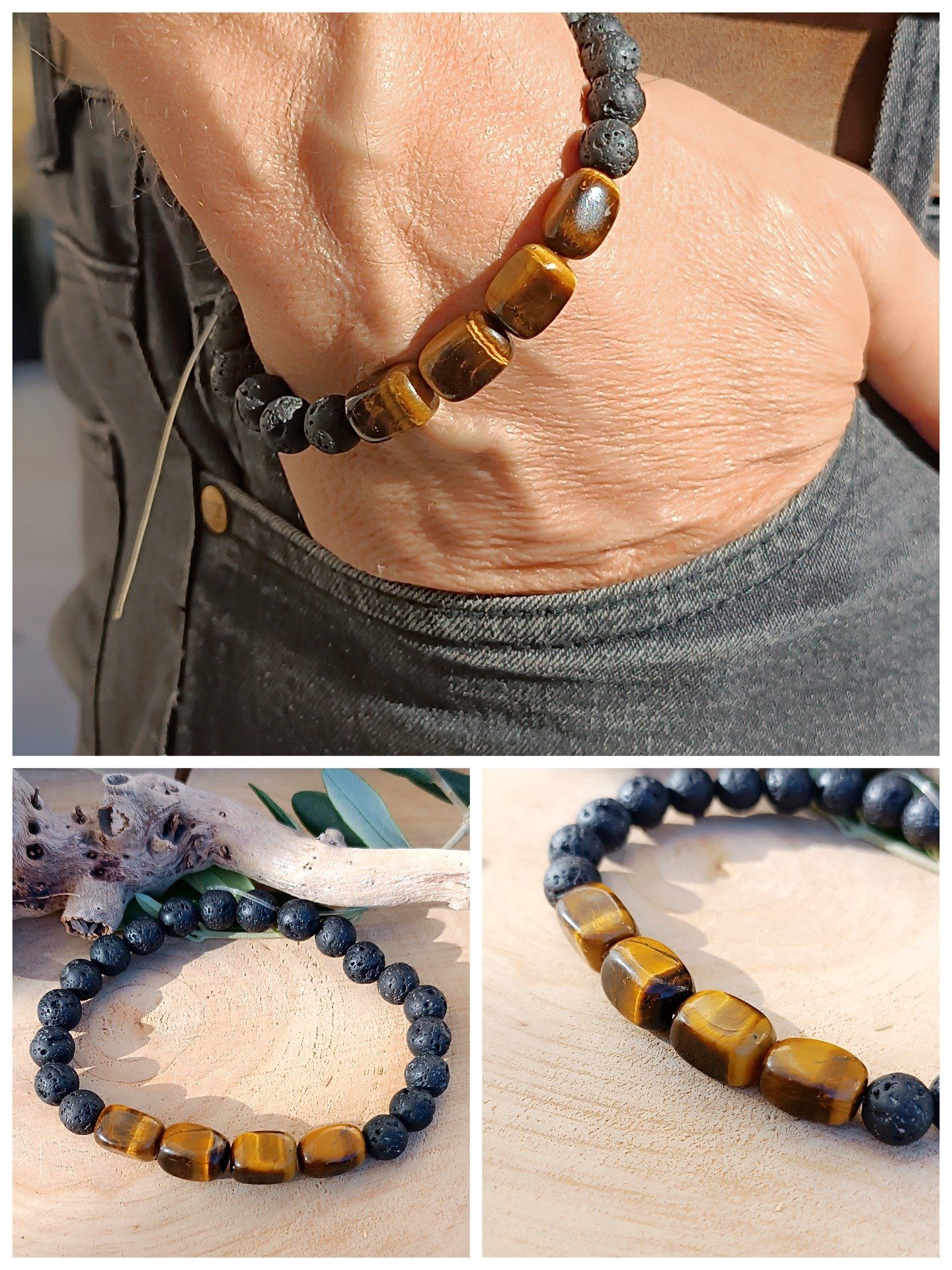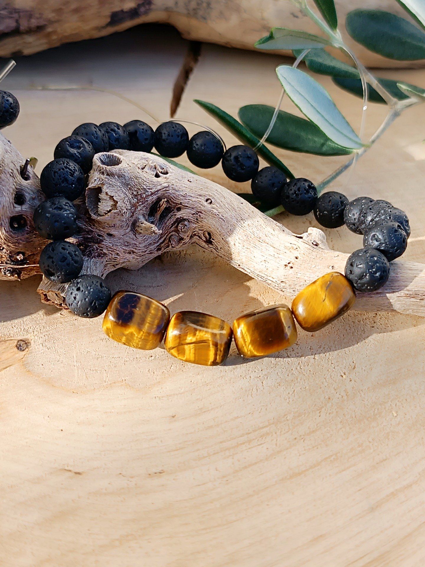 • Pierre de lave & Œil de tigre : un mélange volcanique et doré, visuel et puissant.